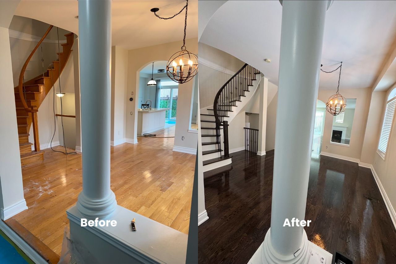 For over 15 years, we've been honing our expertise, mastering the nuances of hardwood floor restoration and working with a variety of hardwood floor finishes throughout Toronto, Mississauga, Oakville, and beyond. Our commitment to excellence can be seen whether we're polishing hardwood floors in a cozy residence or undertaking new hardwood installation in sprawling commercial spaces.